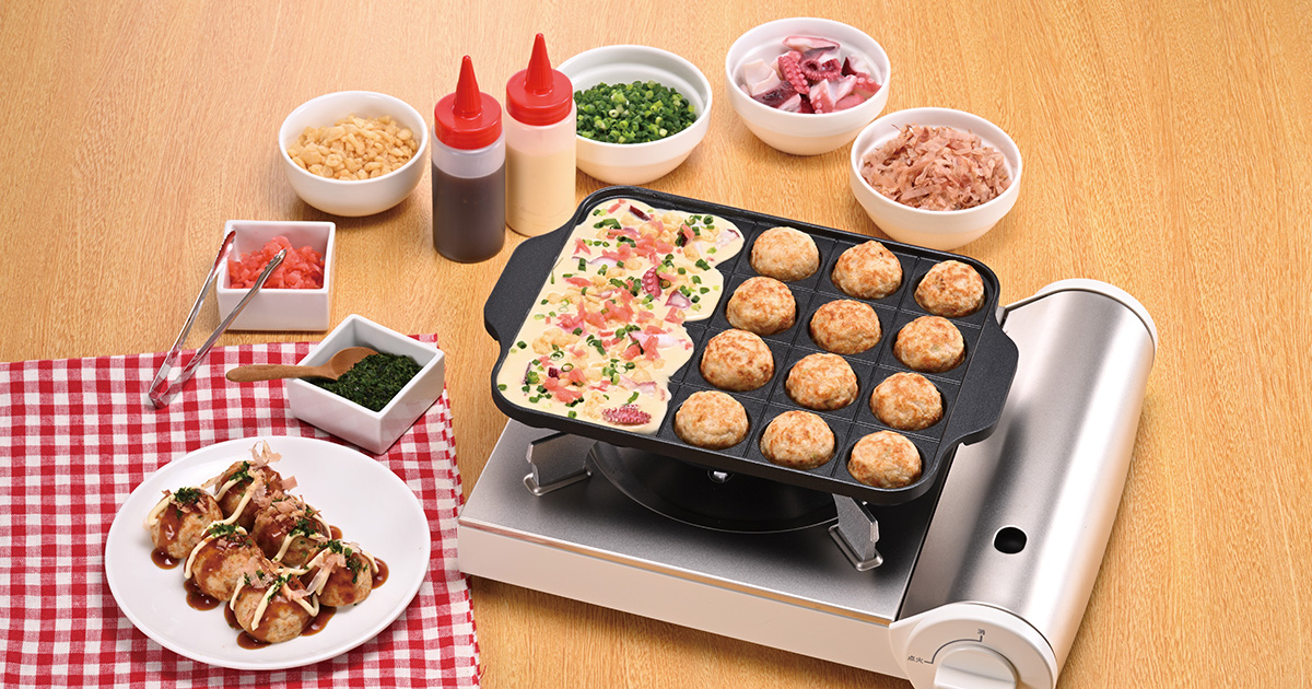 You can enjoy making delicious, piping-hot takoyaki and okonomiyaki at home! We also offer products featuring cute octopus and pig characters.