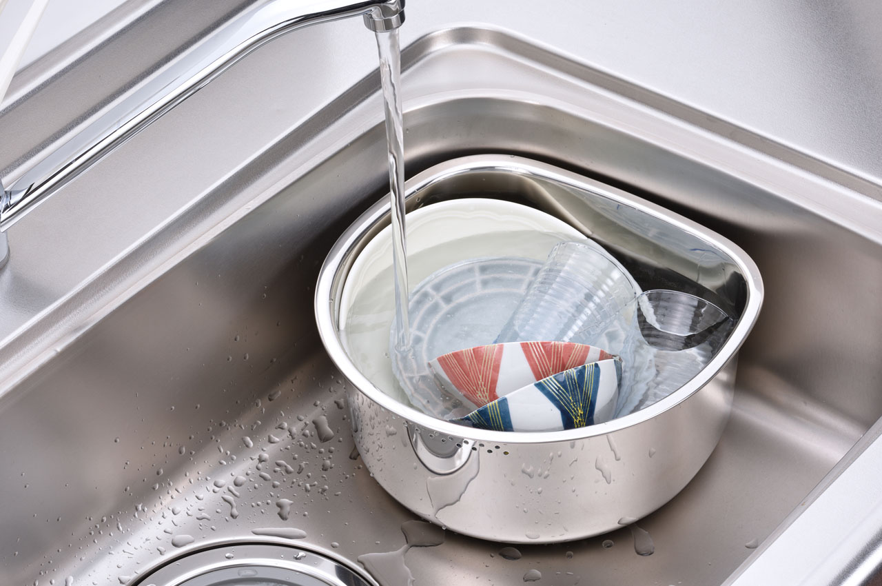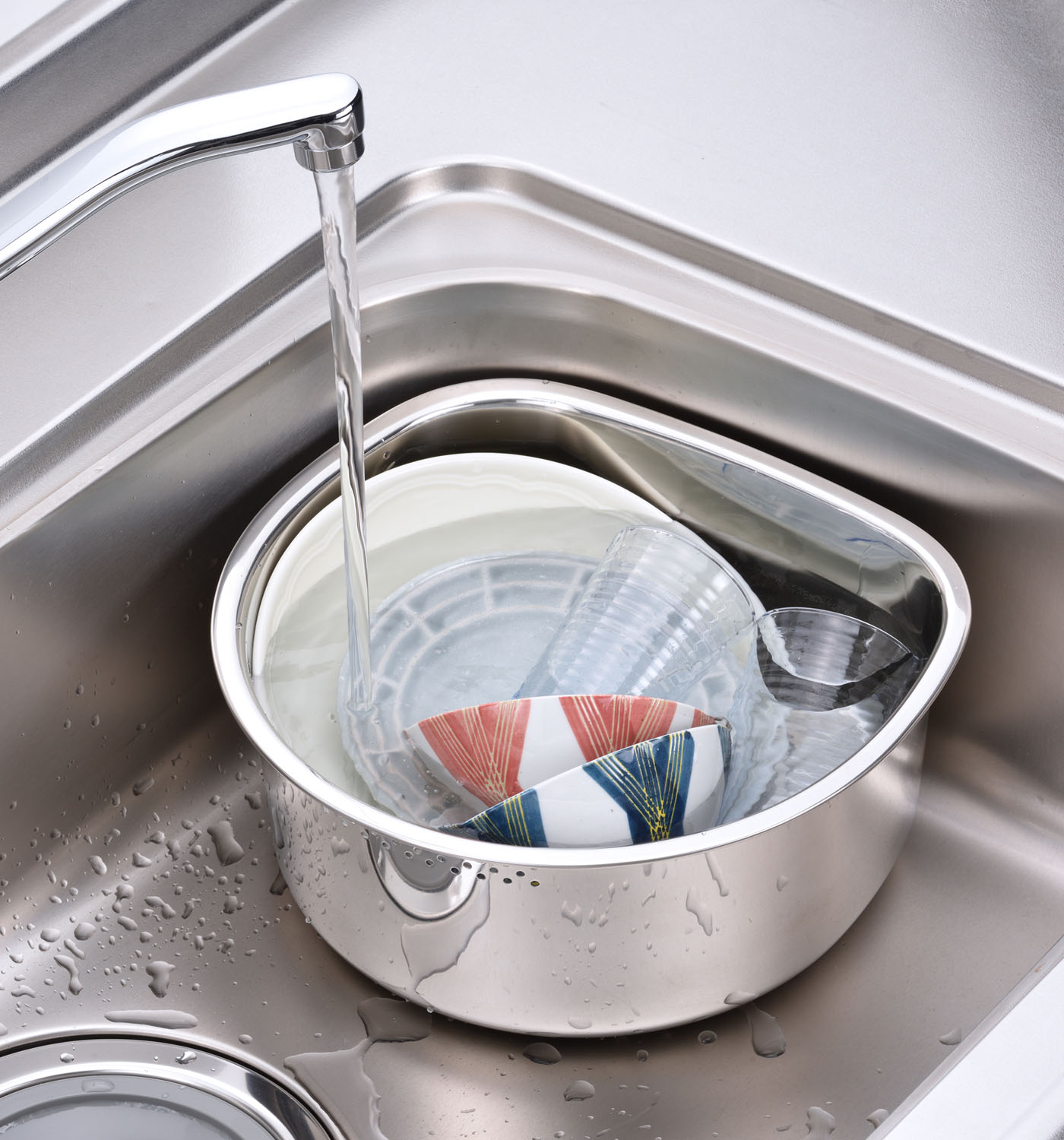 A wash tub that makes efficient use of your sink space. Equipped with rubber feet to help prevent scratches on the sink.