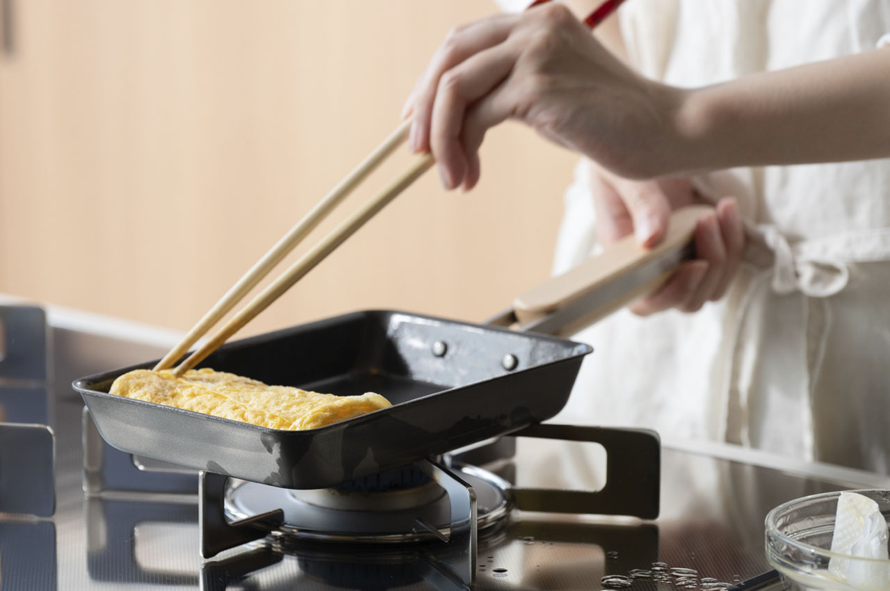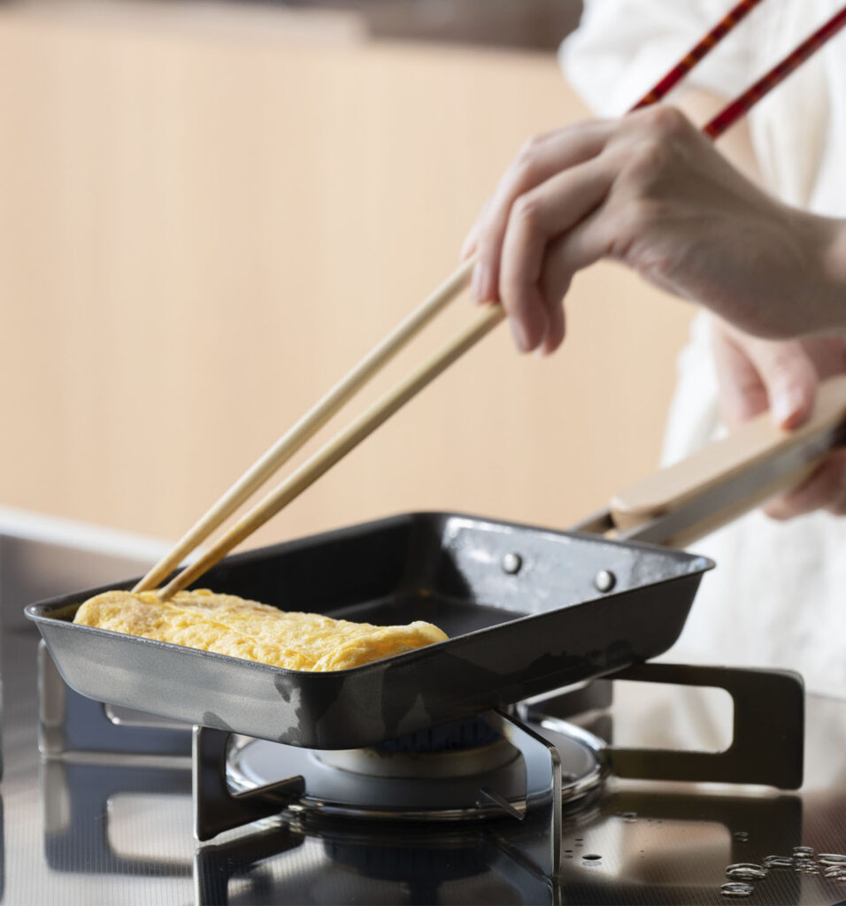 After numerous experiments, we arrived at the ideal thickness that ensures even heat distribution. Now available in a compact, rectangular shape perfect for making rolled omelets. The pan’s even heating not only creates beautifully cooked omelets, but also seals in the flavor of meats and fish with a savory, crispy finish. Its quick heat-up time makes it ideal for cooking fried eggs, sausages, and more, helping you prepare meals efficiently—especially during busy mornings.