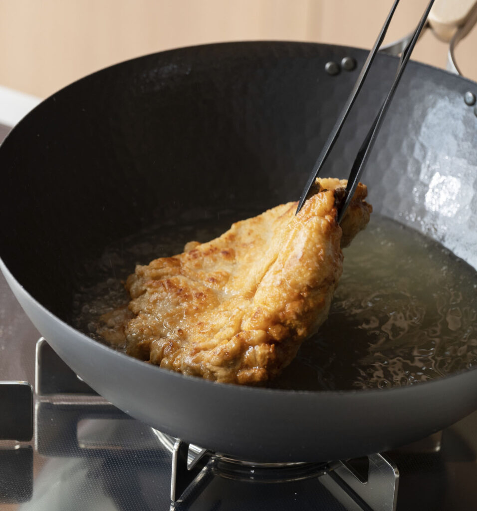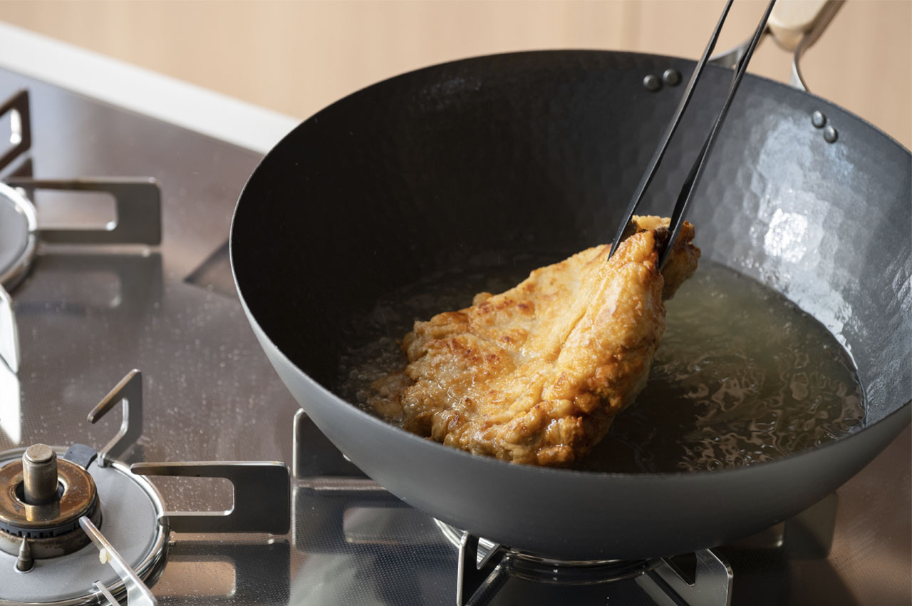 The goal was to create a lightweight and easy-to-handle iron wok that even women can use for stir-frying. Iron is ideal for stir-frying, where high heat is crucial, but its weight is a drawback. Therefore, we repeatedly experimented with different processing methods and traditional techniques to develop this product. We hope this wok, which retains the benefits of iron while reducing its weight to the limit, will help you make delicious, crispy stir-fried vegetables.