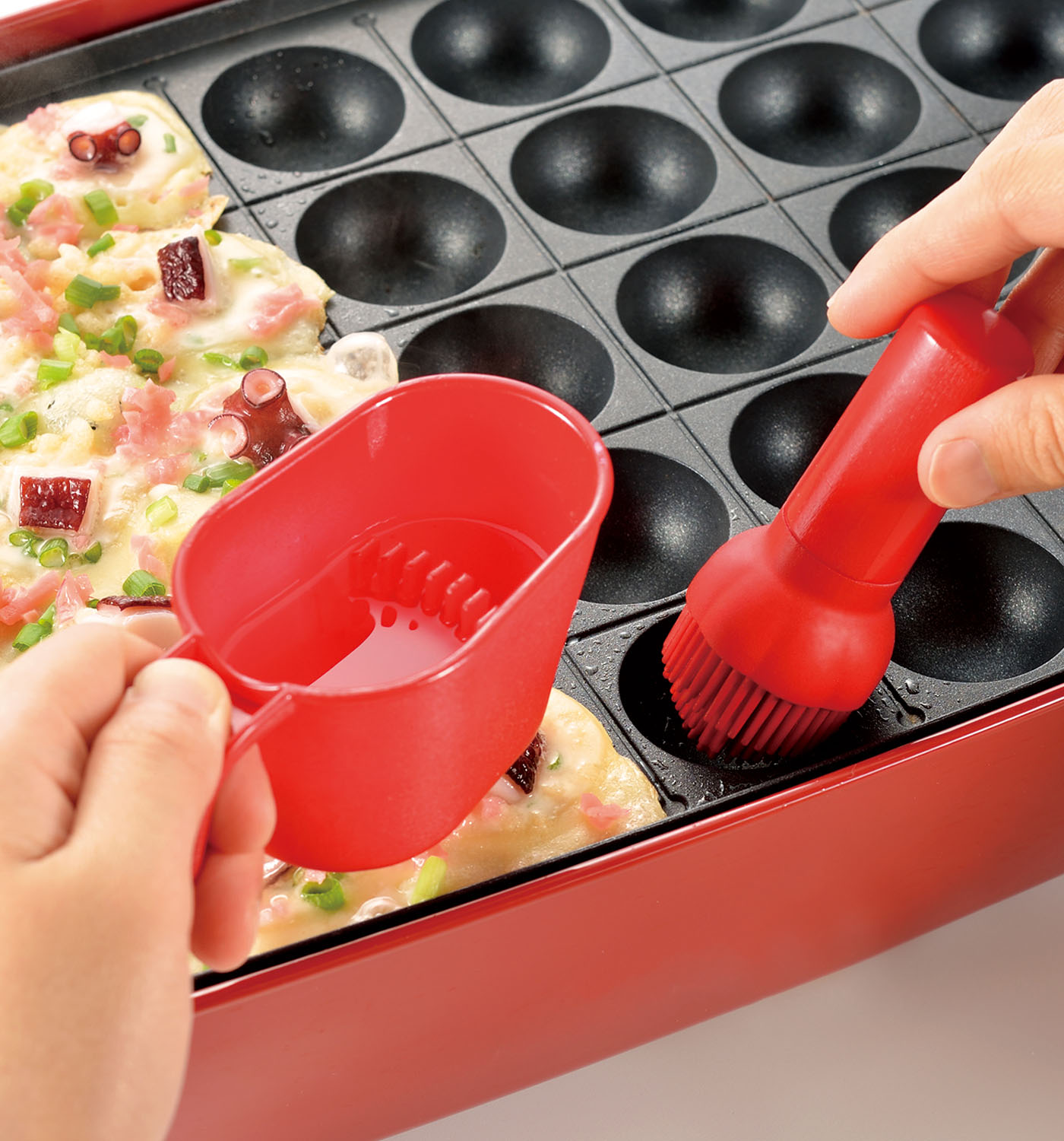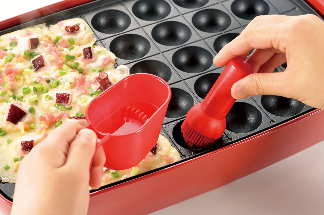 A handy tool for greasing takoyaki makers and griddles with ease.