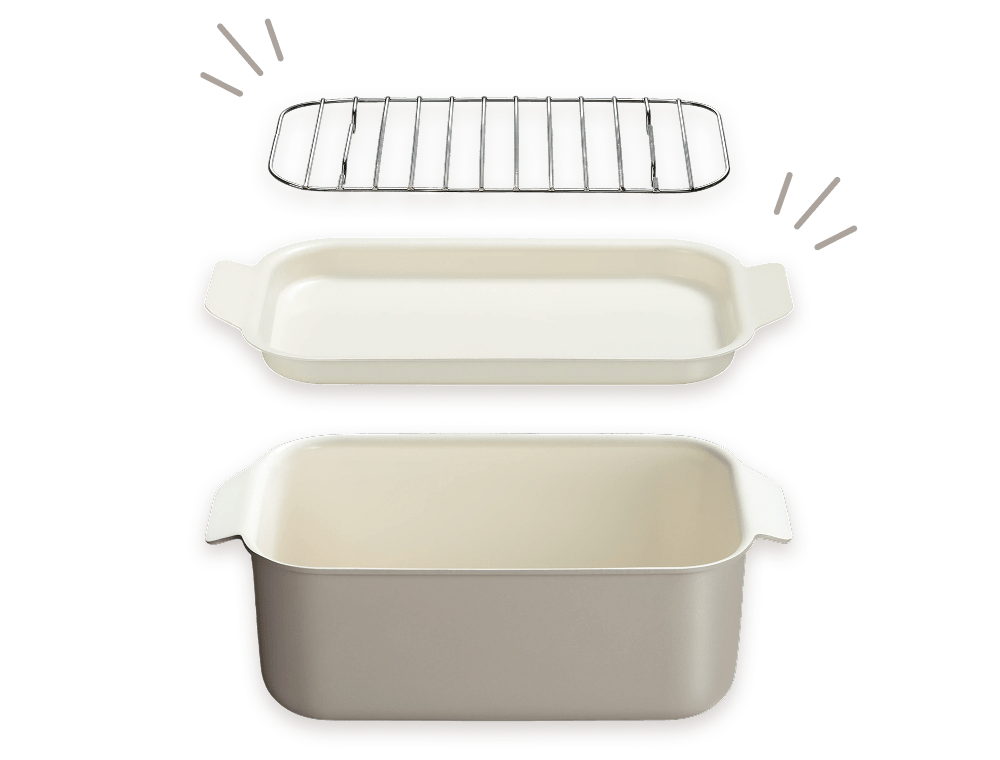 | 材質 | 本体:アルミニウム合金、はり底:ステンレス鋼(クロム16%)、表面加工:セラミック塗膜加工、バット:アルミニウム合金(セラミック塗膜加工)、アミ:鉄(クロムめっき) |